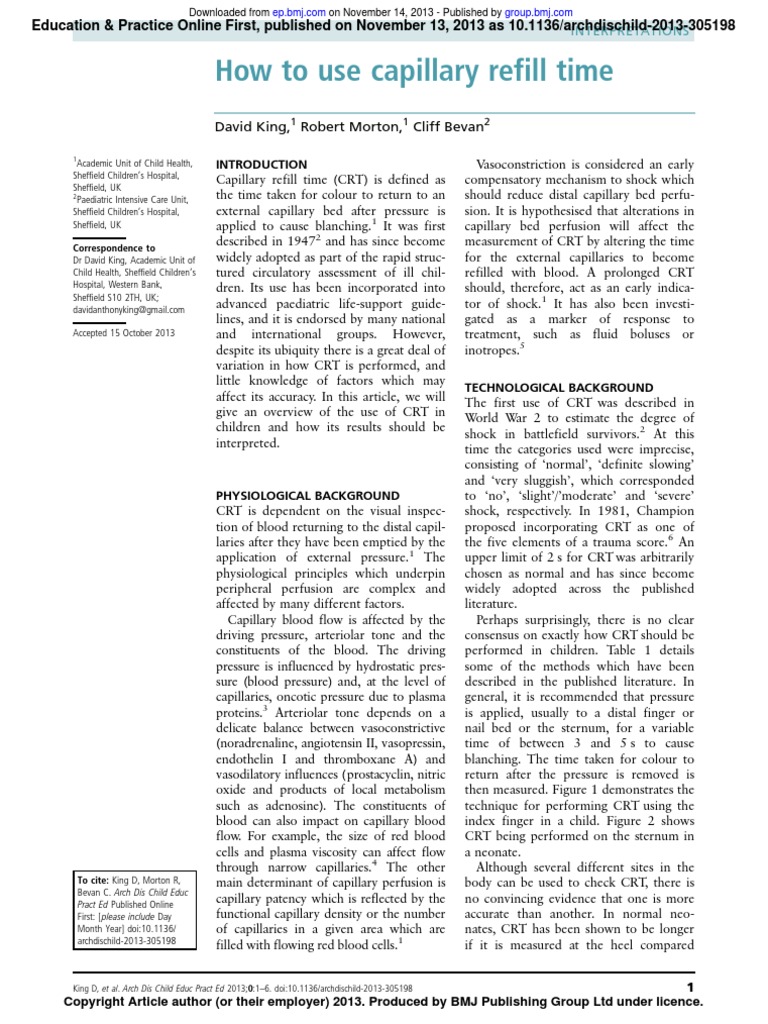 How To Use Capillary Refill Time David King Robert Morton Cliff Bevan Shock Circulatory Sepsis from imgv2-1-f.scribdassets.com Examples of these pathologic states include but are not limited to: Press your thumb tip flat onto the gum just above the upper front teeth and apply pressure for a few seconds. The capillary refill time is often done as part of the physical exam by nurses and physicians. A prolonged crt may indicate the presence of circulatory shock. Procedure edit the following steps have to be followed when doing the test: Here, we learn how to check the capillary refill time on tucker. Capillary refill testtest procedure:apply pressure to the distal volar portion of the digit or the nail of the digit until the tissue turns pale. You don't have to press really hard.
